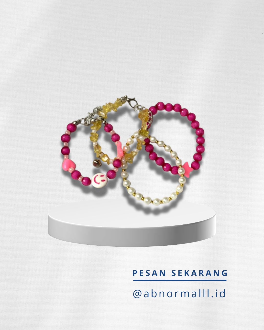 Gelang manik-manik handmade dengan desain simple namun elegan. Terbuat dari kombinasi manik warna cerah dan mutiara sintetis yang cantik, cocok dipakai sehari-hari maupun acara spesial. Gelang ini ringan, nyaman digunakan, dan menambah kesan stylish pada penampilan.